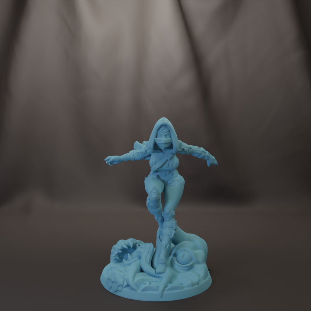 • Images are 3D renderings, not the actual color of resin. Figures will come in a dark gray resin as shown in example print photo.