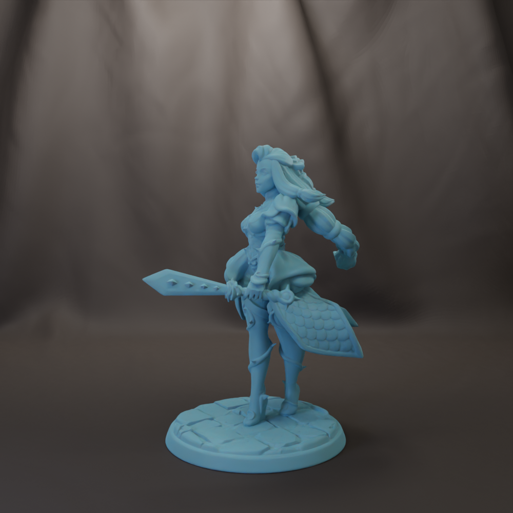 Awesome 28mm or 32mm scale female Oaken Hollow Heroes miniature. Comes with separate base and body. Assembly is easy, using something like super glue.