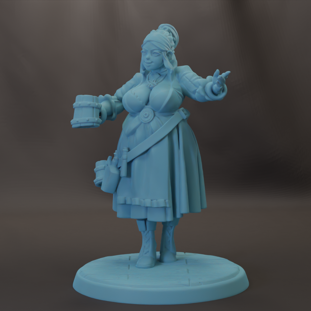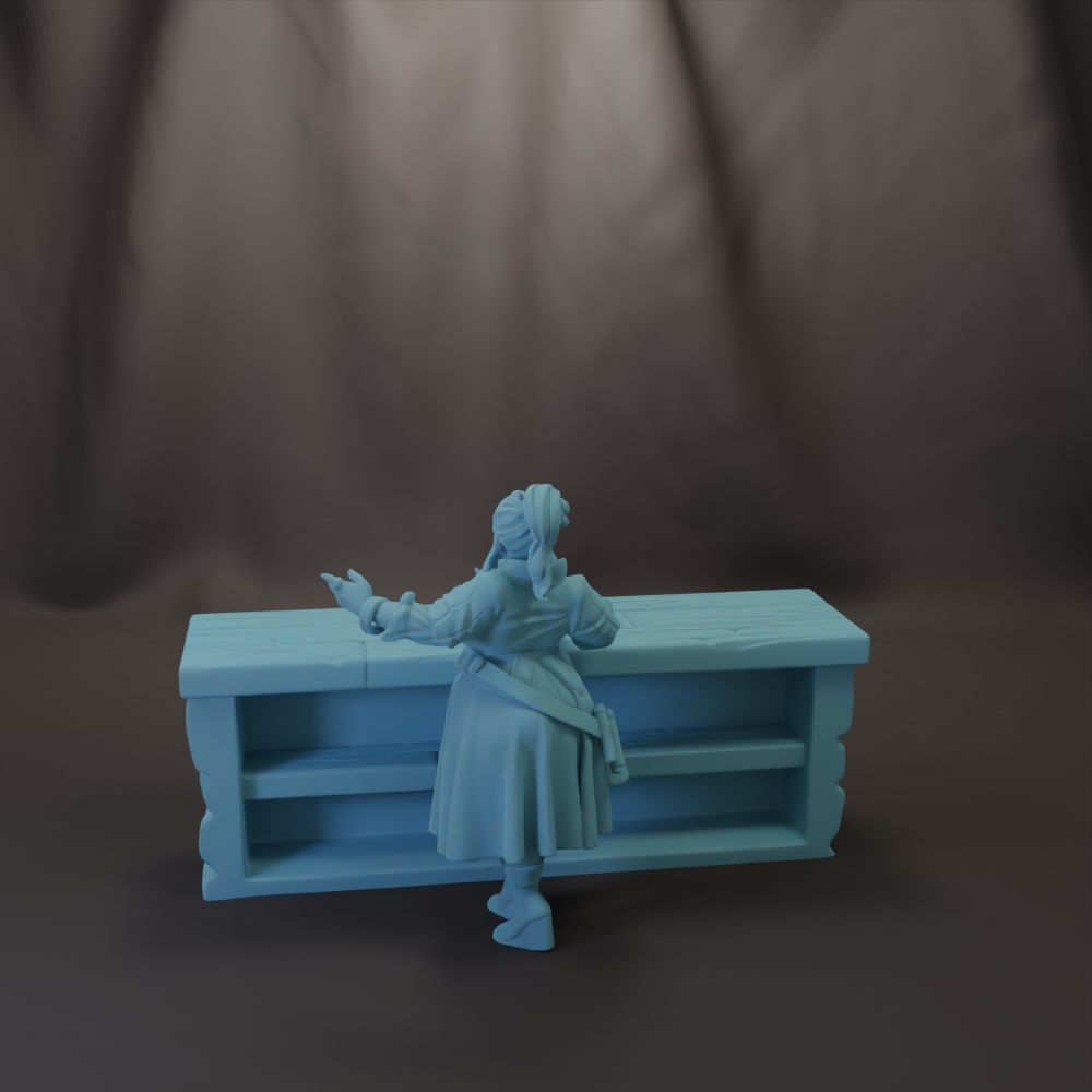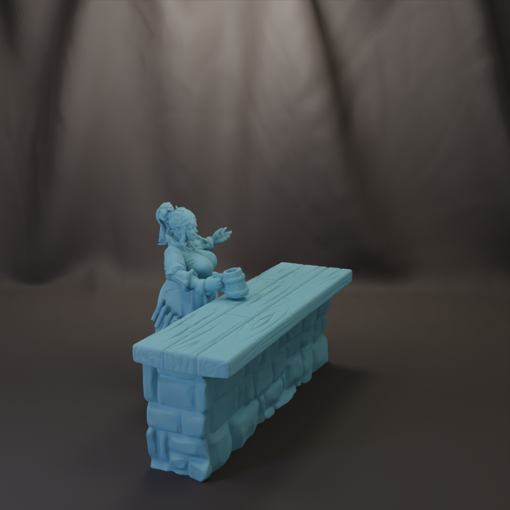 Female Barkeep Josephine and Bar Scatter 28mm, 32mm, or 54mm Miniatures Tavern