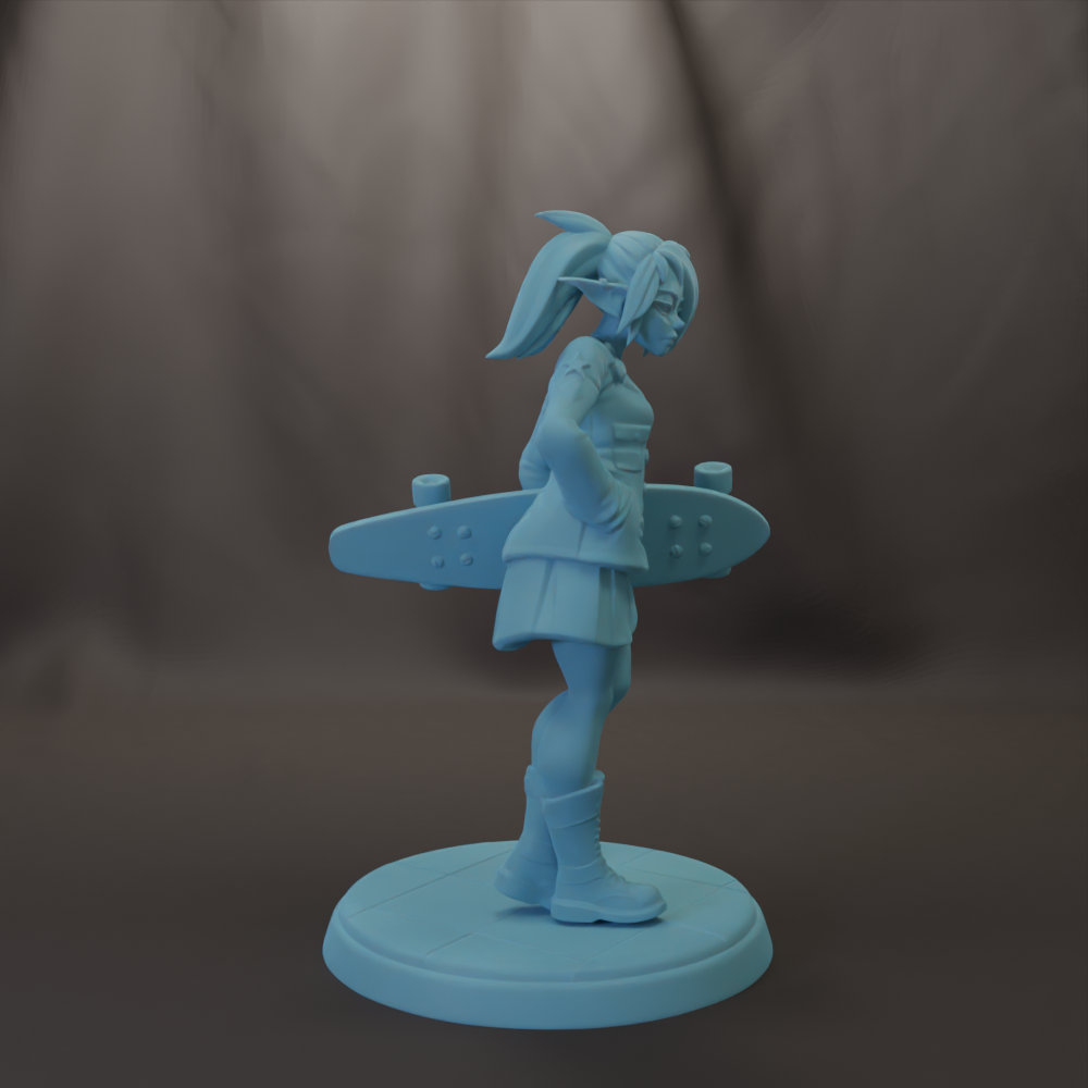 Silent Barb Longboard Sexy Elven Female College Girl 28mm, 32mm, or 54mm Miniatures