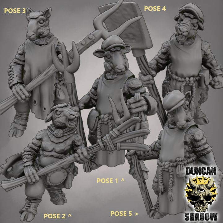 Sheep Folk Farmers Village Mob Fighters Ram Town Defenders 28mm or 32mm Miniatures Woolpack