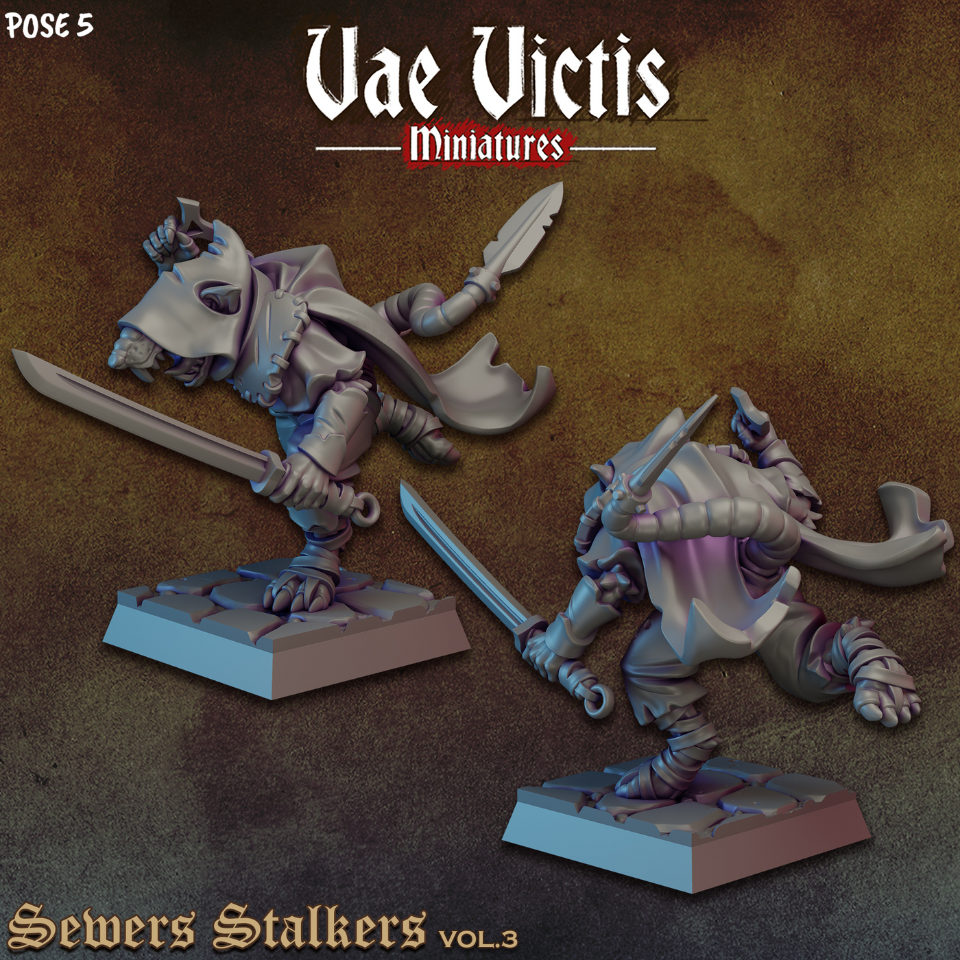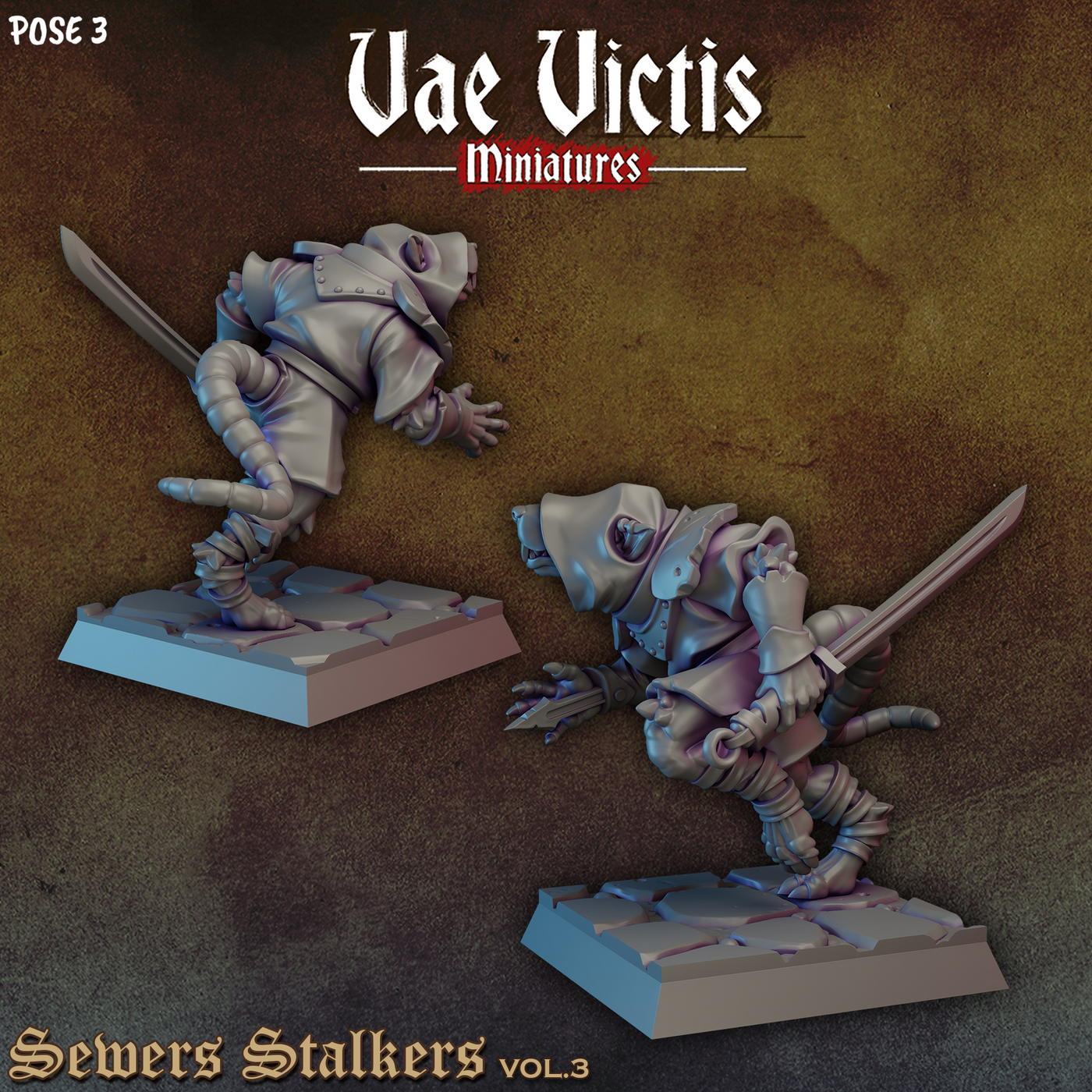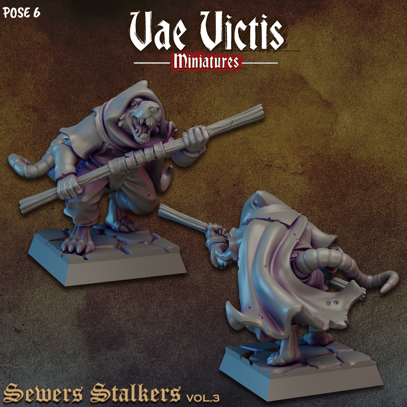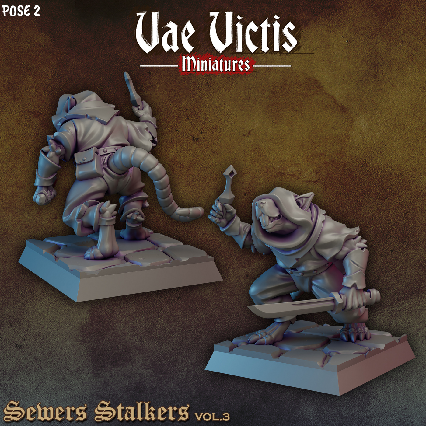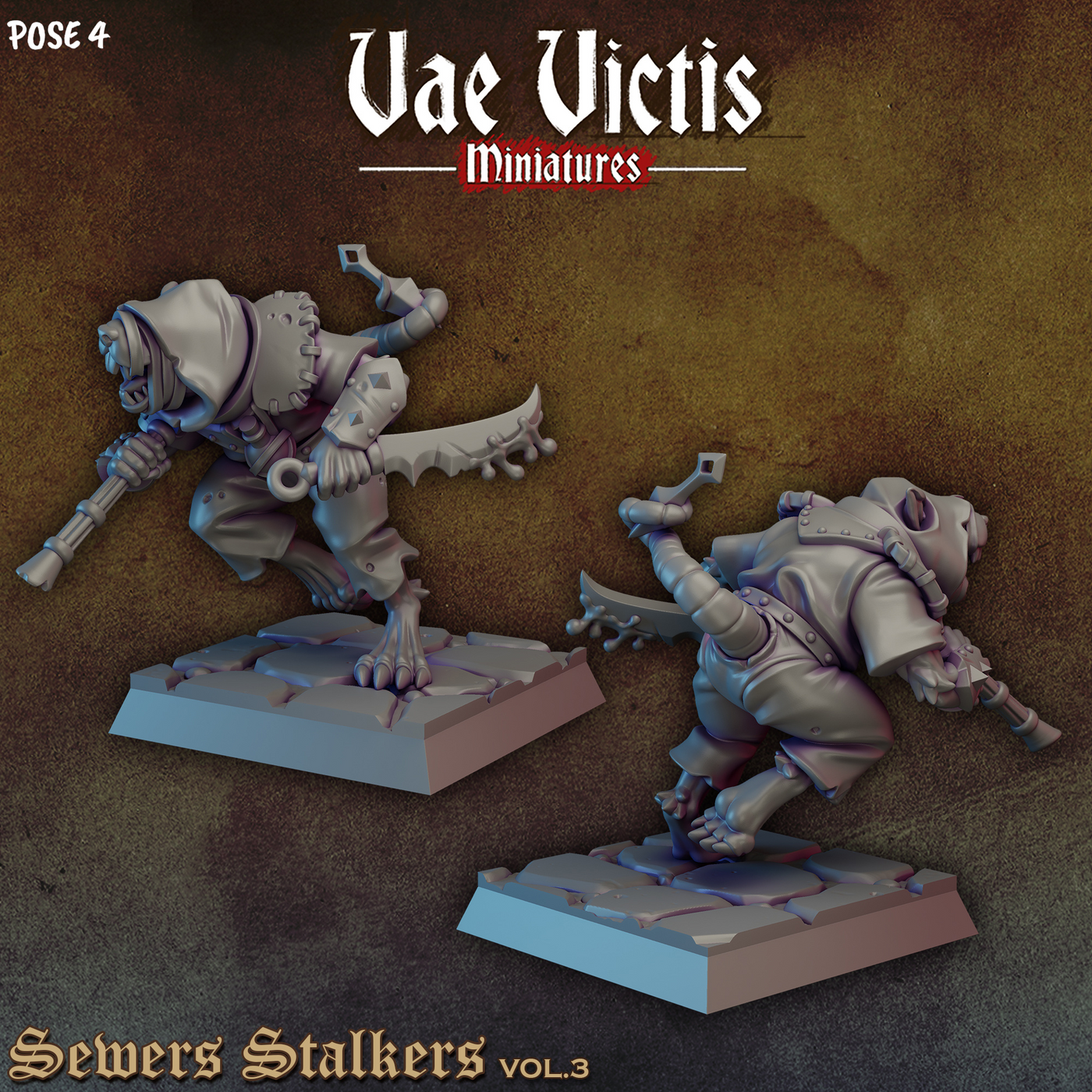Armed Ratfolk Fighters 28mm or 32mm Miniatures Sewers Stalkers Vol 3