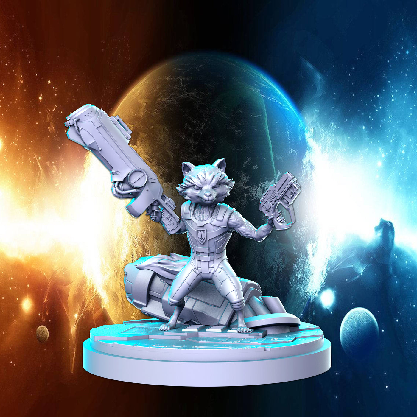 Ricky Anthropomorphic Racoon Fighter Gunner Hero - 28mm or 32mm Miniatures RN Estudio Mini Champions GotG