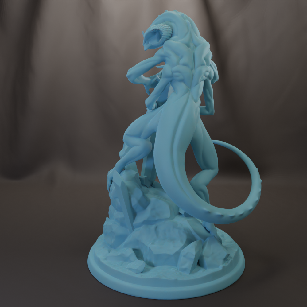 • Images are 3D renderings, not the actual color of resin. Figures will come in a dark gray resin as shown in example print photo.