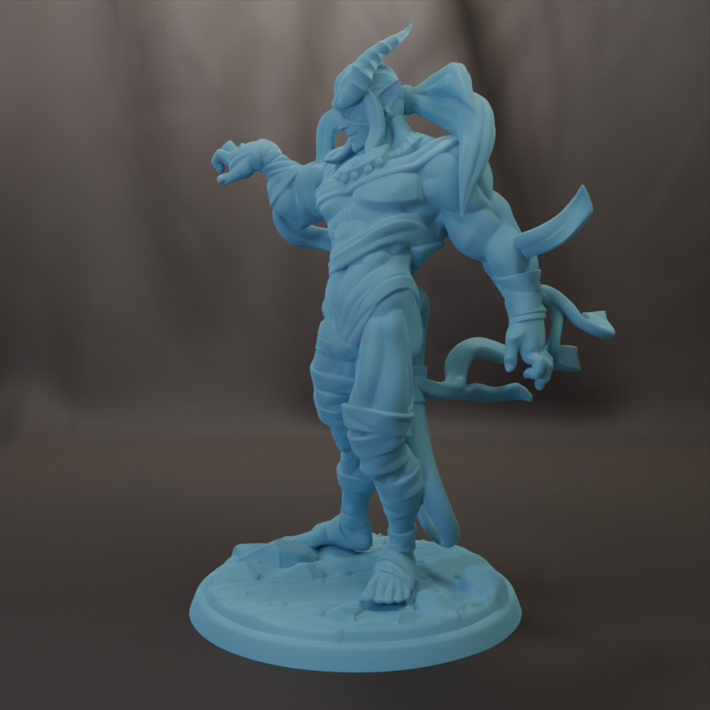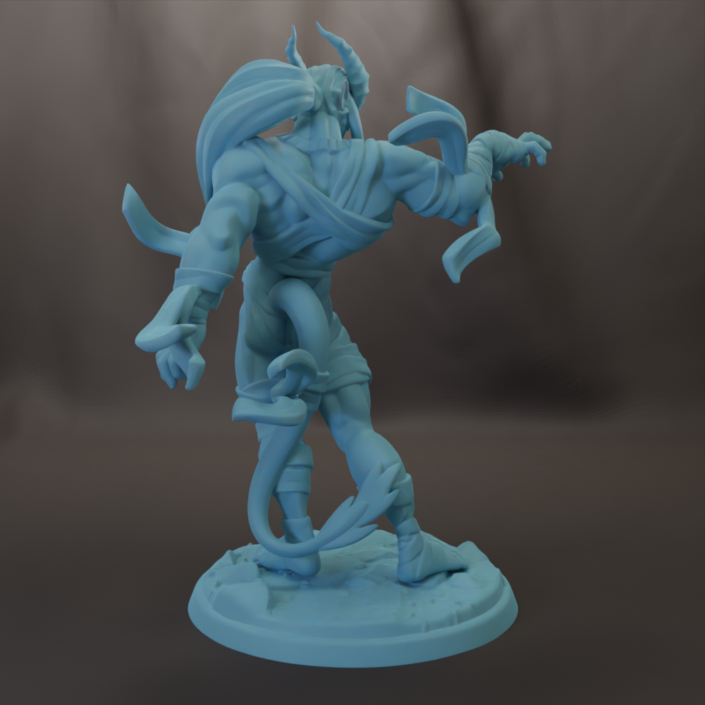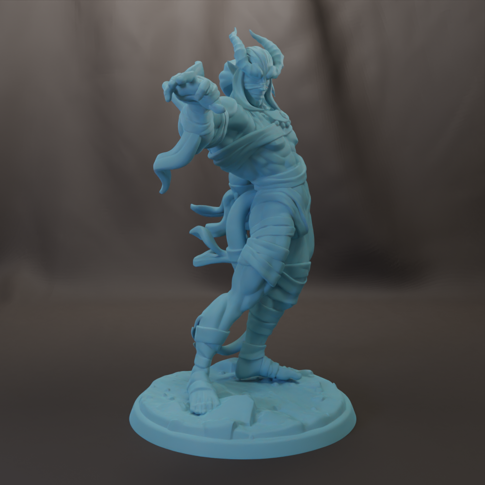 Stix the Tiefling Drummer is ready for the Halloween party with his sexy Mummy costume. He will play well in DnD, Pathfinder, and other RPG campaigns. He also would make a great table top display.