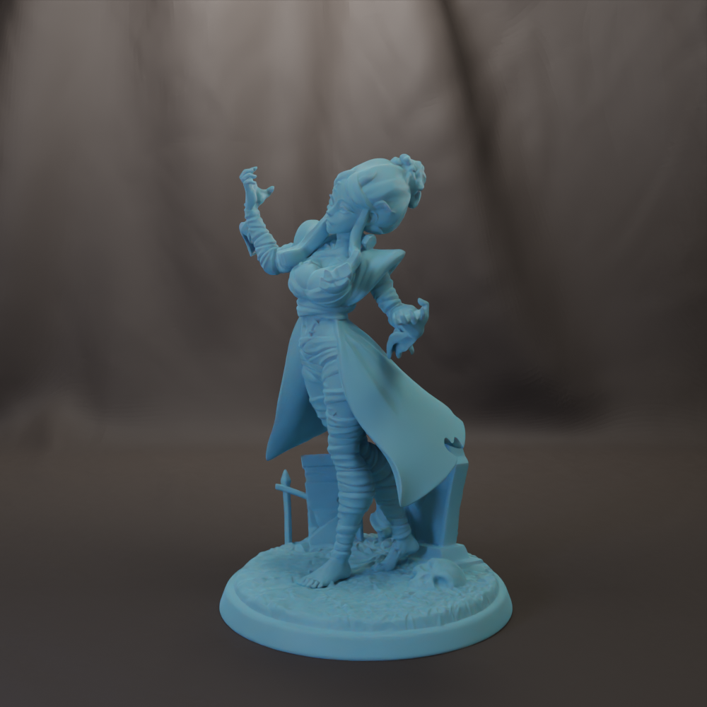 • Images are 3D renderings, not the actual color of resin. Figures will come in a dark gray resin as shown in example print photo.