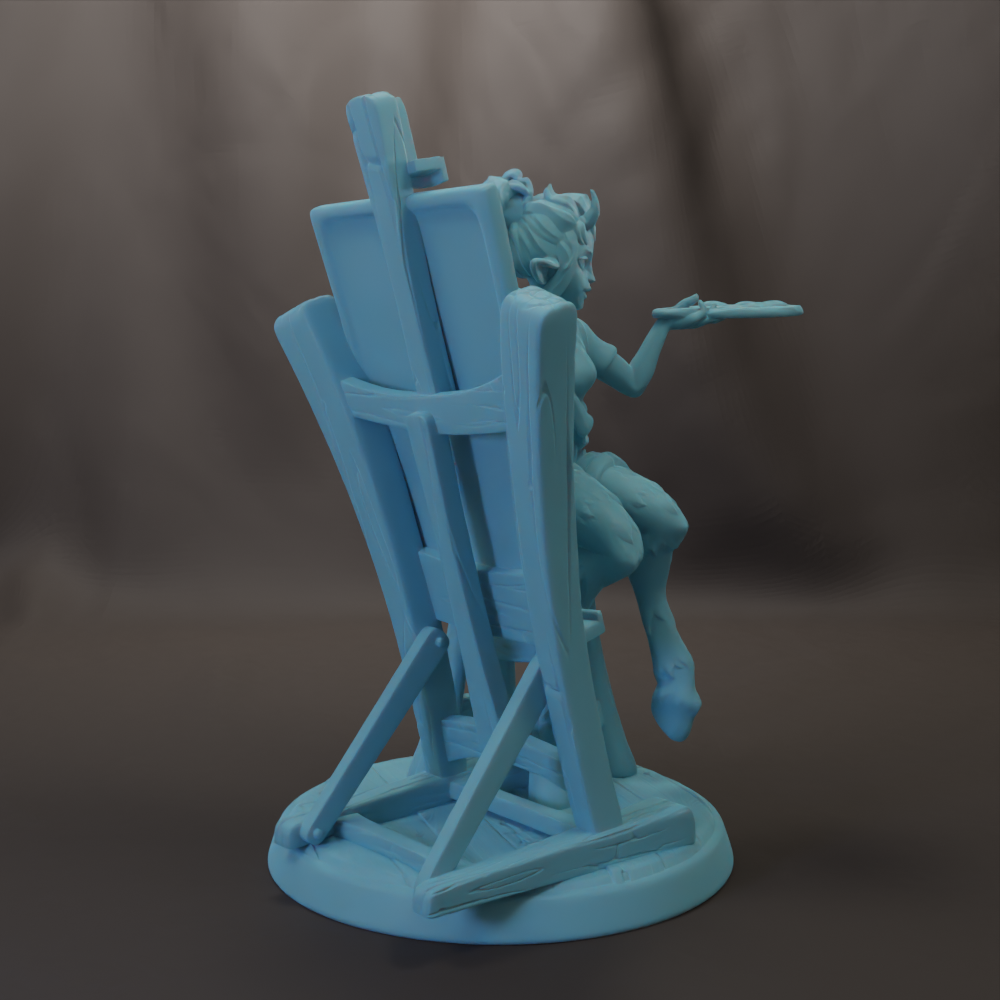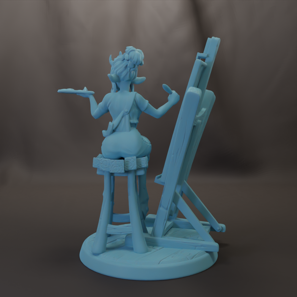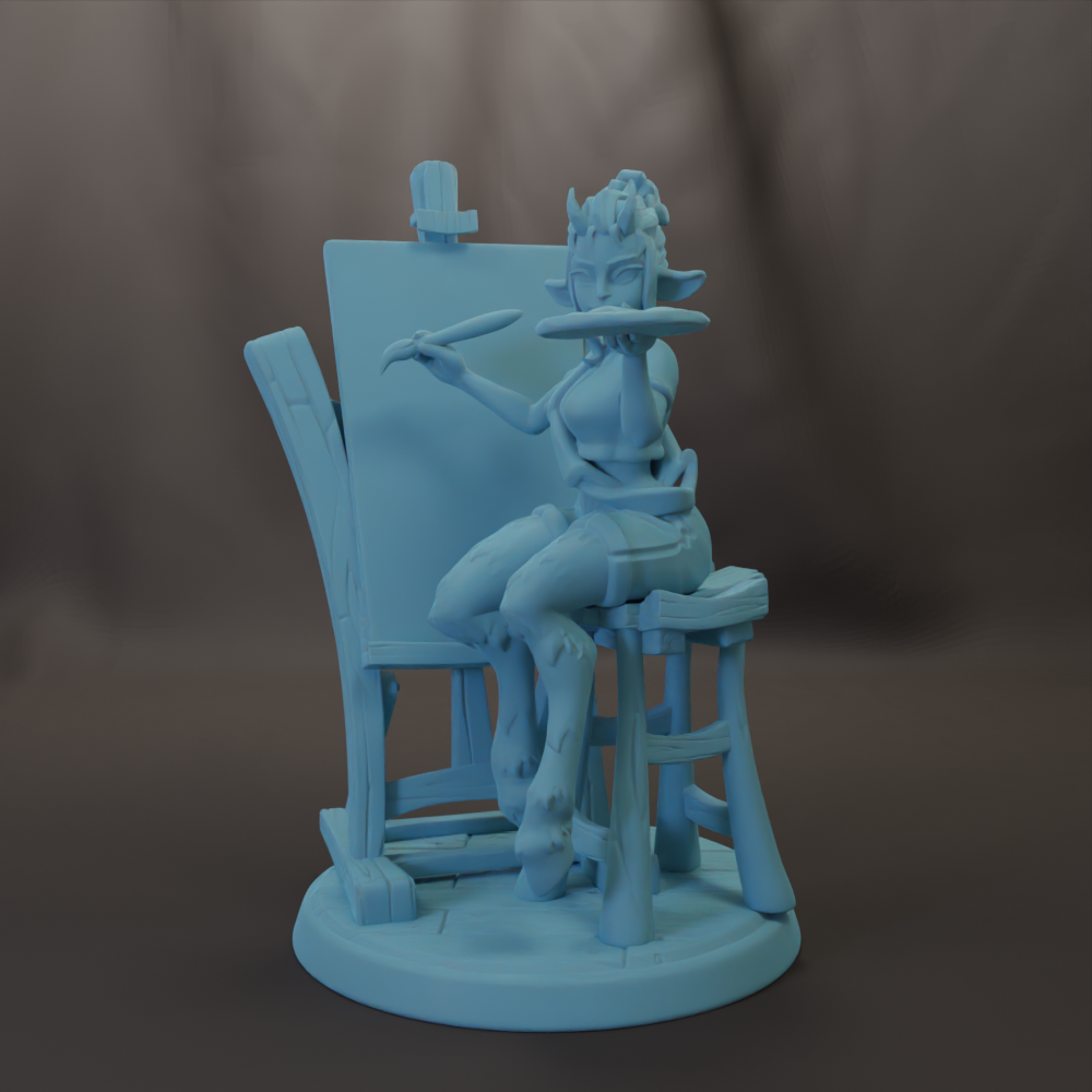 Awesome 28mm or 32mm scale female miniature, this cute Satyr art student comes with a separate base, easel, canvas, and stool. She will play well in DnD, Pathfinder, and other RPG campaigns. She also would make a great table top display.