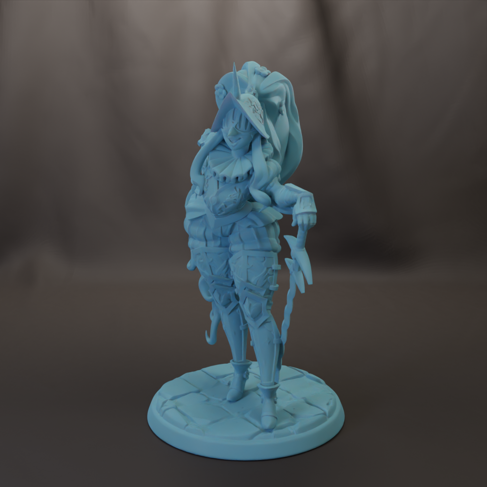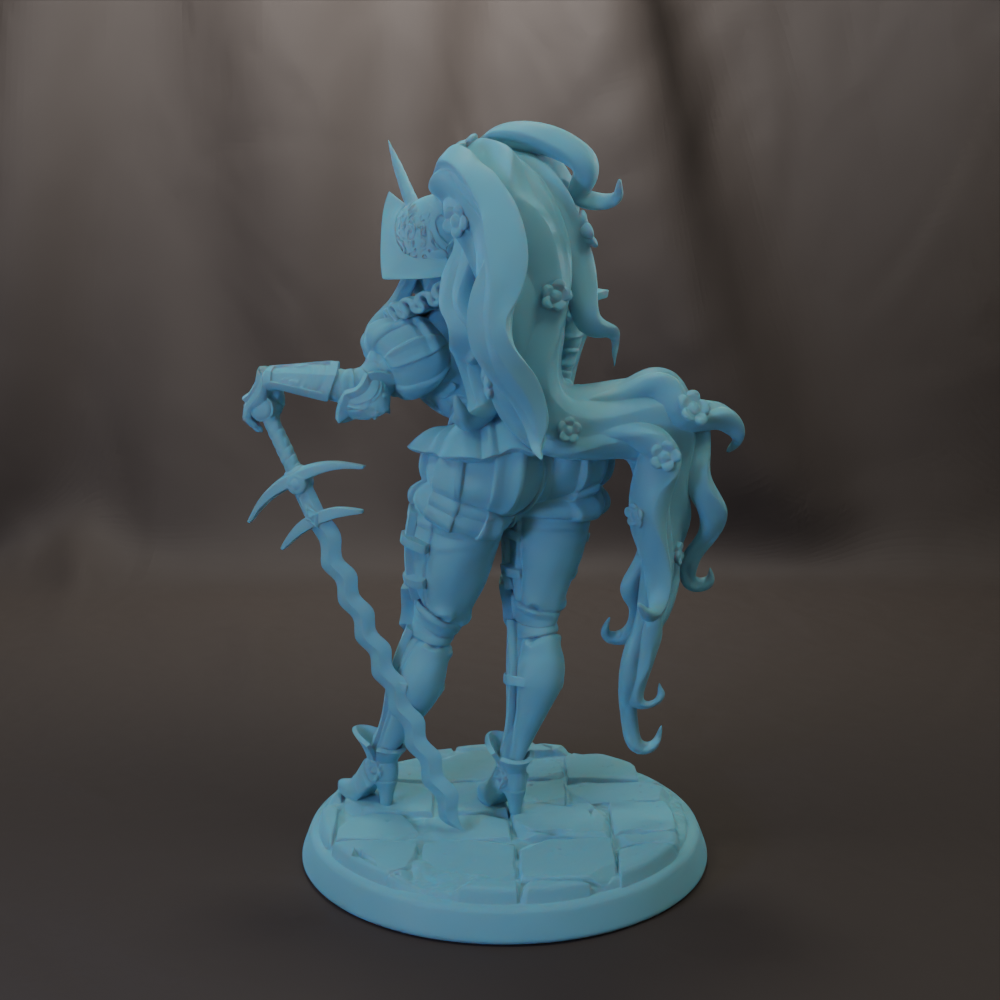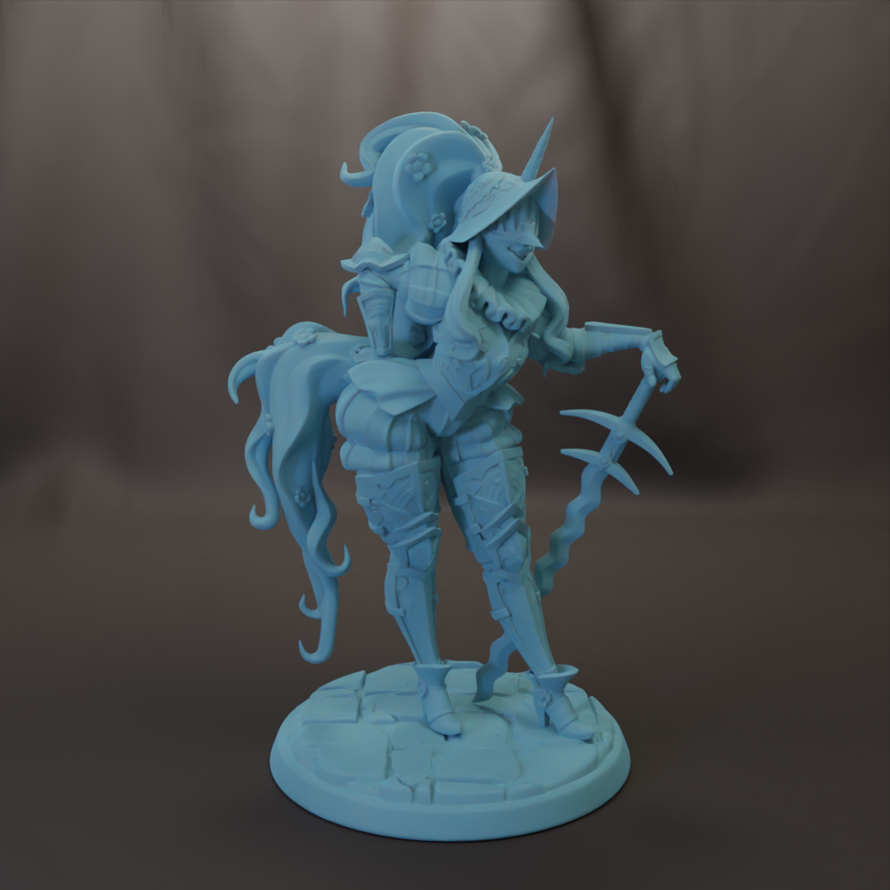 • Images are 3D renderings, not the actual color of resin. Figures will come in a dark gray resin as shown in example print photo.