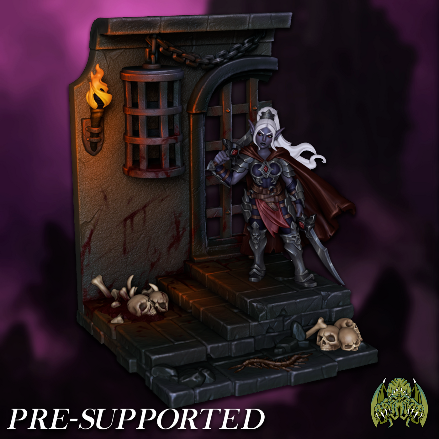 Dark Prison Diorama by Miniatures of Madness - 28mm or 32mm Scale - Drow Warrior Optional