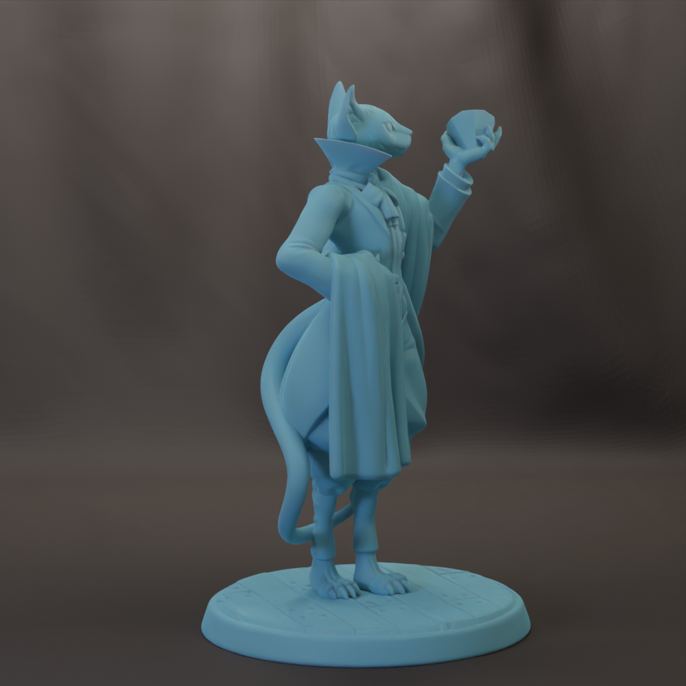Awesome 28mm or 32mm scale miniature, Mortimer is a Tabaxi Nobleman that will play well in DnD, Pathfinder, and other RPG campaigns. He also would make a great table top display.